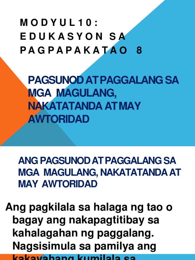 Esp 8 Modyul 10 Pagsunod At Paggalang