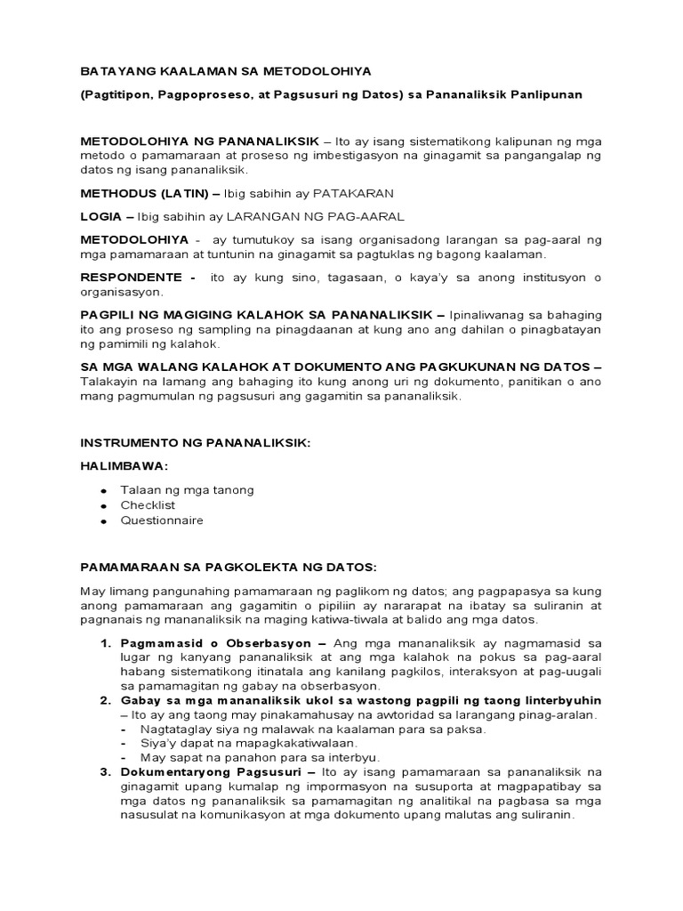 Metodolohiya Sa Pananaliksik Panlipunan