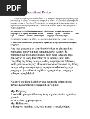 6ang mga pangatnig at transitional devices ay nakatutulong sa. Sometimes whole sentences and paragraphs that make possible a smooth. Kasunod ang ilang halimbawa ng pangatnig at transitional devices na karaniwang ginagamit sa Filipino.