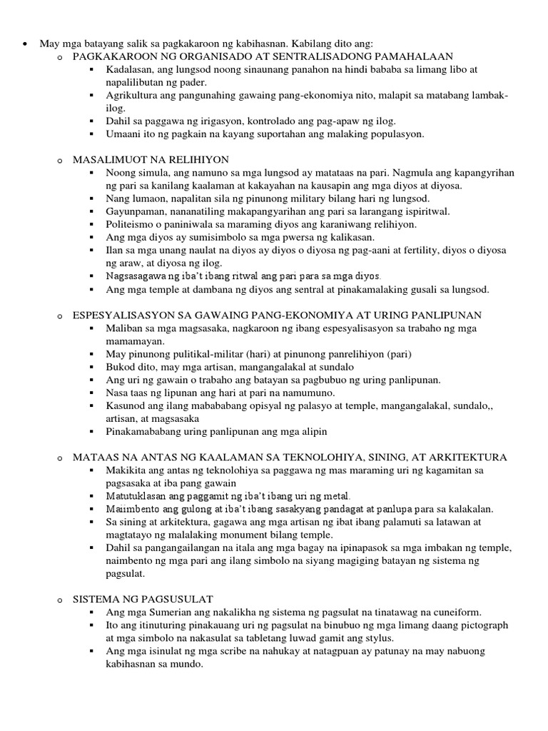 Batayan Ng Pagkakaroon Ng Kabihasnan