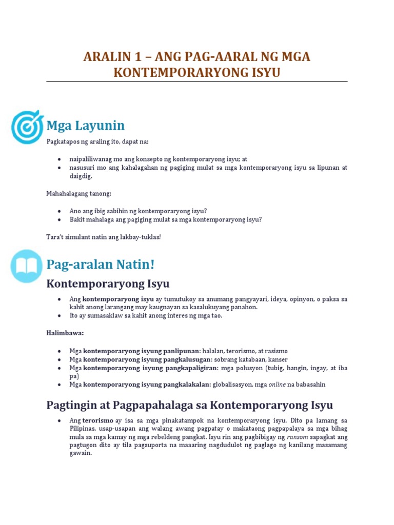 Aralin 1 Pag Aaral Ng Kontemporaryong Isyu