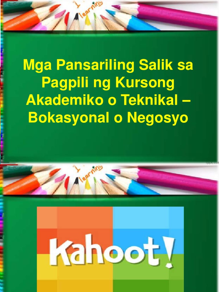 Mga Pansariling Salik Sa Pagpili Ng Tamang Kursong Akademiko O Teknikal Bokasyonal Sining At Isports Negosyo O Hanapbuhay Final